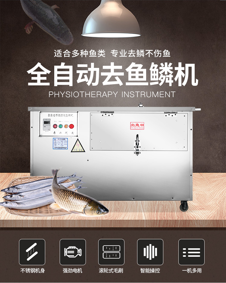 自動魚鱗機廣泛應(yīng)用于魚類銷售市場、飯店、魚類加工廠等等,本產(chǎn)品不會對魚頭、魚尾、魚鰭造成損傷。該機器利用旋轉(zhuǎn)效應(yīng),使魚在運動中去鱗,去鱗干凈,對魚的加工去鱗屬國內(nèi)外首創(chuàng),主要指標(biāo)達(dá)到國際先進水平。